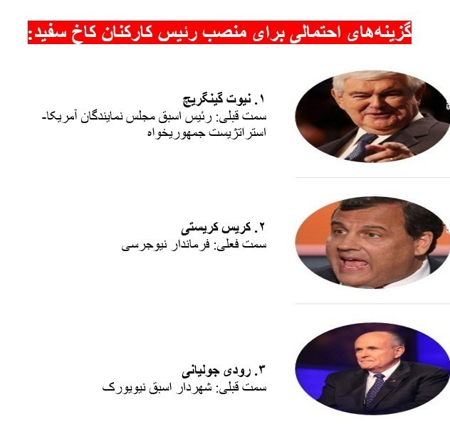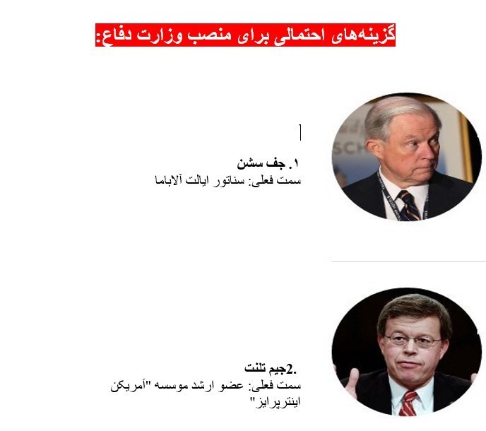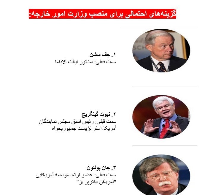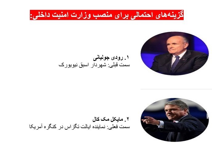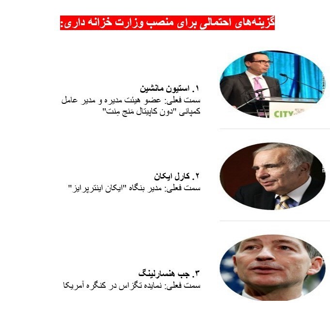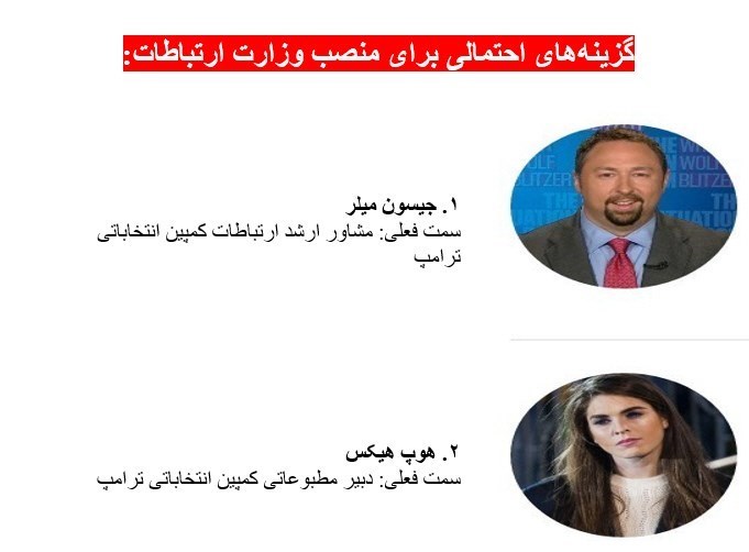 باید منتظر ماند و دید دونالد ترامپ، چهل و پنجمین رئیس جمهور کشور ایالات متحده آمریکا از کدام یک از افرادی فوق در مناصب کلیدی استفاده خواهد کرد.