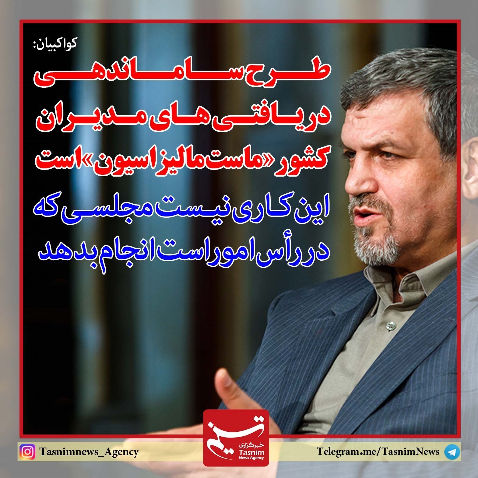 فوتوتیتر/ کواکبیان:طرح ساماندهی دریافتی‌های مدیران کشور «ماست‌مالیزاسیون» است