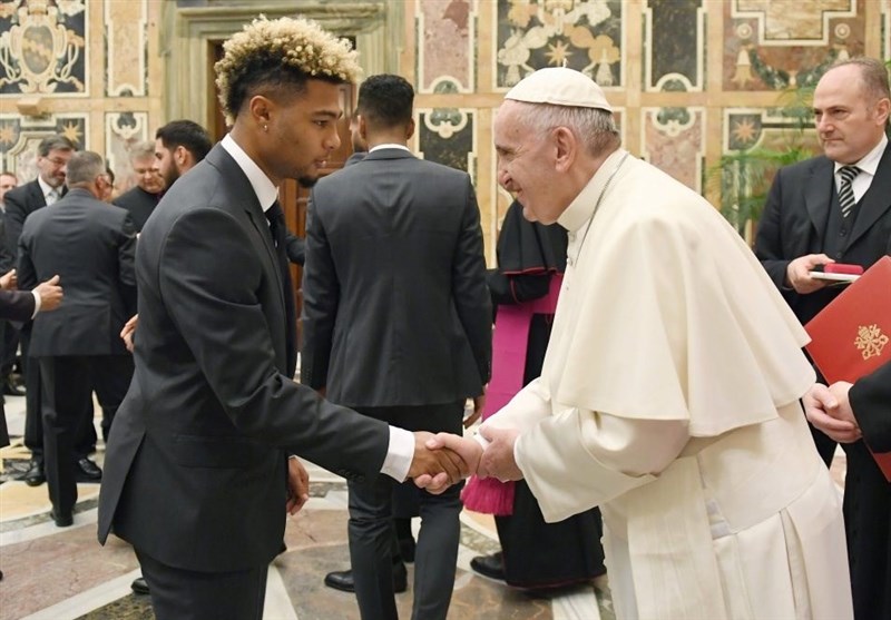 اعضای تیم آلمان امروز با پاپ فرانسیس، رهبر کاتولیکهای جهان دیدار کردند و به او پیراهن امضا شده آلمان را نیز هدیه دادند.