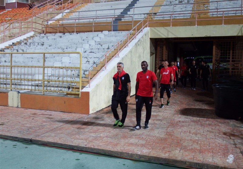 کارلوس کیروش پیش از ورود بازیکنان به زمین، وضعیت این چمن را مورد بررسی قرار داد.