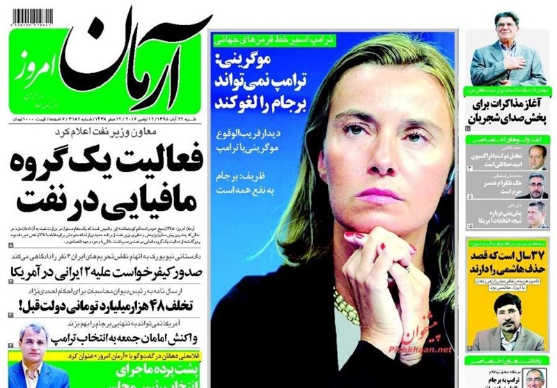 برخی تیترهای روزنامههای اصلاحطلب و حامی دولت که نقل قولی از سخنان فدریکا موگرینی، مسئول سیاستخارجی اتحادیه اروپا است، عبارتند از: «برجام توافق چندجانبه در چارچوب سازمان ملل است؛ نمیتوان آنرا پاره کرد»، « پیام واحد ایران و اروپا به ترامپ»، « موگرینی: ترامپ نمی تواند برجام را لغو کند» و ... .