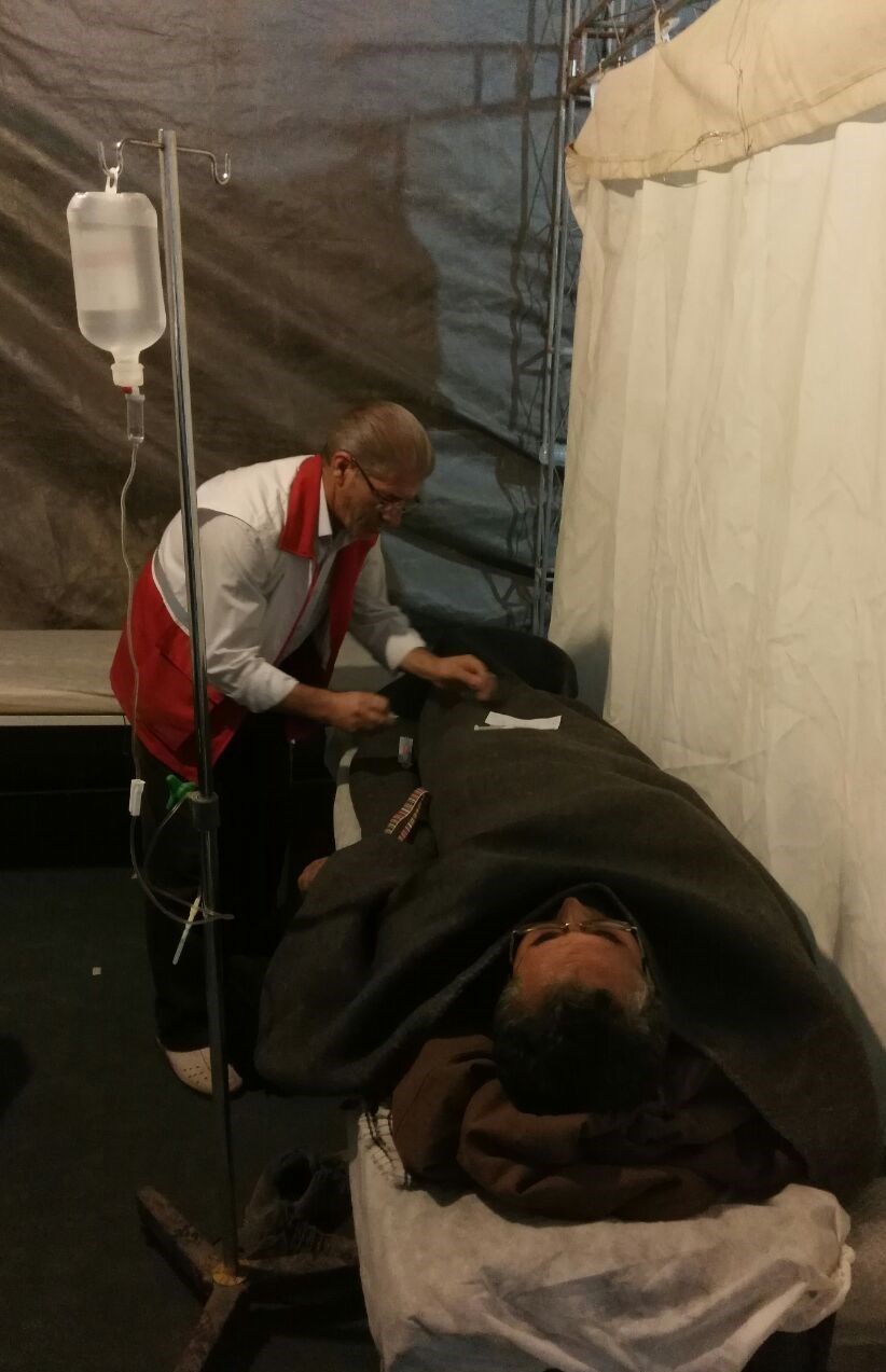 اما چادر دوم هلال احمر ایران در شارع الجمهوری است نبش خیابان امام علی که به "ساحه بلوش" معروف است. این چادر با همکاری هلال احمر برپا شده است و از ساعت 8 صبح تا 2 بامداد به مراجعه کنندگان خدمات درمانی ارائه میدهد.