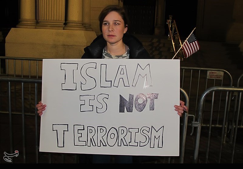 معترضین پلاکاردهایی در دست داشتند که روی آنها نوشته شده بود: «اسلام تروریسم نیست»، «به ترامپ نه میگوییم», «نه به اسلامهراسی», «ما علیه نژادپرستی هستیم», «به تبعیض و فاشیسم نه میگوییم», «گروههای تبعیض و خشونت را نفی کنید».