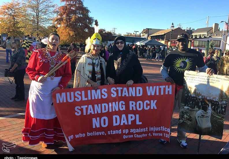 به گزارش خبرنگار خبرگزاری تسنیم در واشنگتن، در روزهای گذشته و بهدعوت گروه "مریلند در کنار «استندینگ راک»" از مردم ایالت مریلند, بیش از صدها نفر از بومیان و مسلمانان آمریکایی در اعتراض به ساخت خط لوله انتقال نفت از طریق رودخانه «میسوری» که باعث آلودگی این رودخانه خواهد شد، کنار اقیانوس اطلس در شهر آناپولیس پایتخت ایالات مریلند تجمع کردند و دست به تظاهرات زدند.