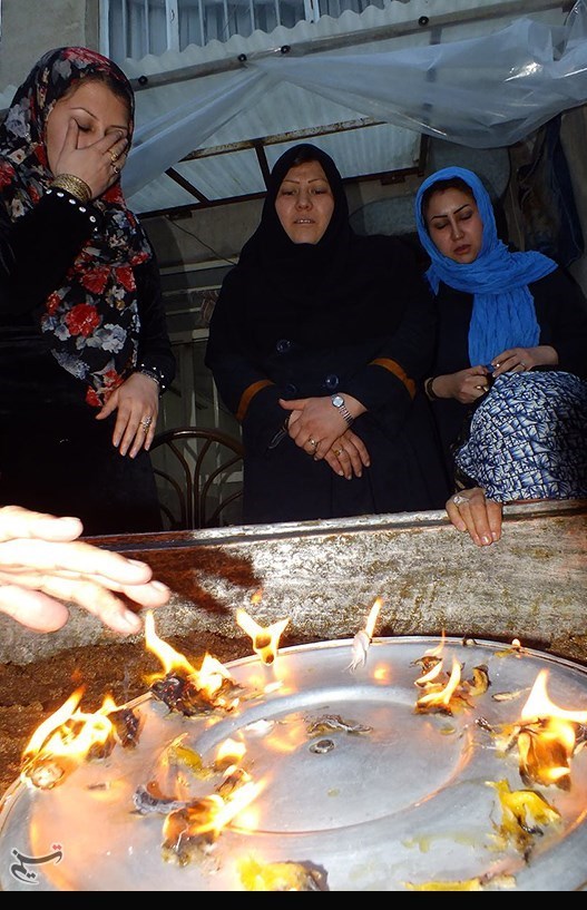 زنی بر روی یک سینی به تعداد افراد حاضر تکهای پنبه میپیچاند و آنها را آتش می زند و میگذارد وسط دیگ و به همه میگوید حاجتتان را مدنظر بگیرید و بعد برای چند دقیقهای در دیگ را میگذارند.