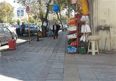 اجرای سنگفرش ویژه عبور نابینایان در معابر شهری که با رنگ زرد از دیگر قسمتهای سنگفرش پیادهرو متمایز شده است از جمله اقدامات موثر در راستای مناسبسازی معابر و اماکن عمومی برای معلولان است اما متاسفانه در بیشتر موارد خودروها و موتورسیکلتهای پارک شده در وسط پیادهروها، تجاوز مغازهدارها به این قسمت پیادهروها، ناهمواریهای مسیر پیادهرو و غیره تردد پرخطر را برای نابینایان در این مسیر ایجاد کرده است.