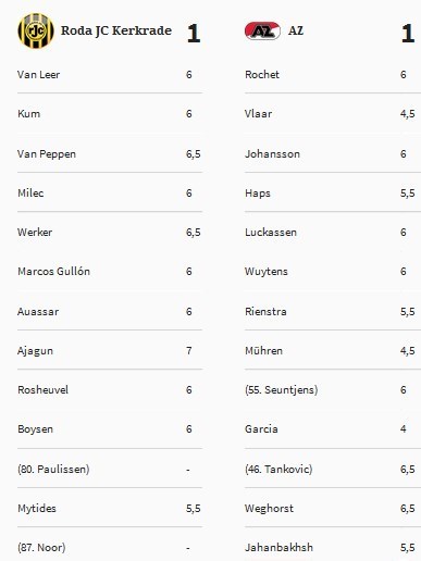 تیم آلکمار نیز با بازی 71 دقیقهای علیرضا جهانبخش برابر تیم ته جدولی رودا متوقف شد و سایت مجله هلندی به این ملیپوش ایرانی نیز نمره متوسط 5.5 را اختصاص داد.