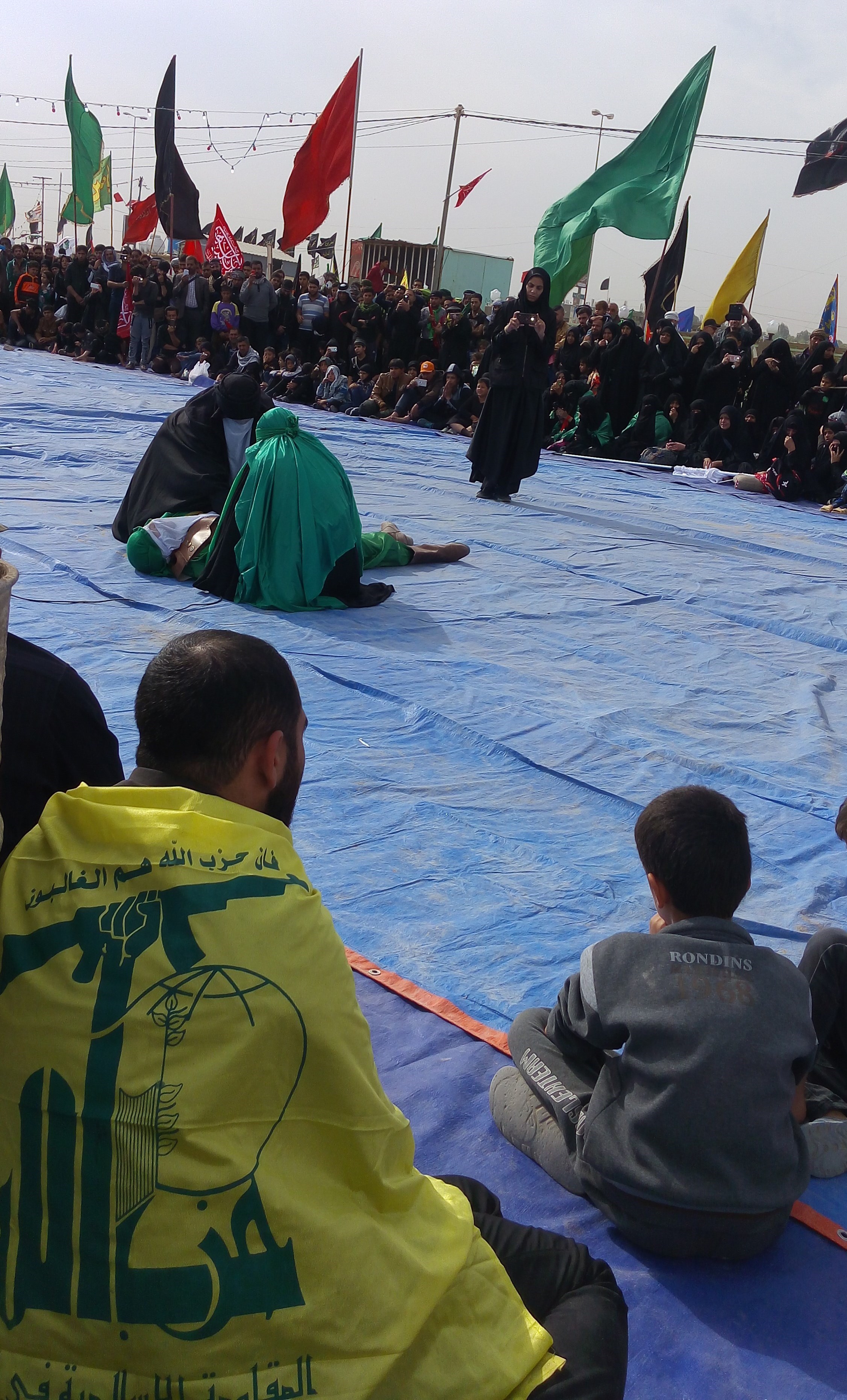 تعزیه حضرت علی اکبر (ع) با حضور بیش از هزار نفر از زائران پیاده روی به شکلی زیبا اجرا شد و البته به دلیل زبان کار مخاطبان مختلفی از کشورهای جهان به تماشای آن نشستند، در میان آن جمعیت انبوه، این جوان لبنانی با پرچم حزب الله لبنان و گریه هایش برایم حسی دیگر داشت.