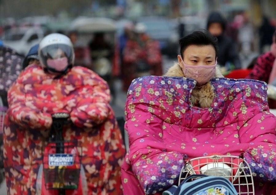 عکس/ پوشش عجیب موتورسواران چینی برای مقابله با باد و سرما
