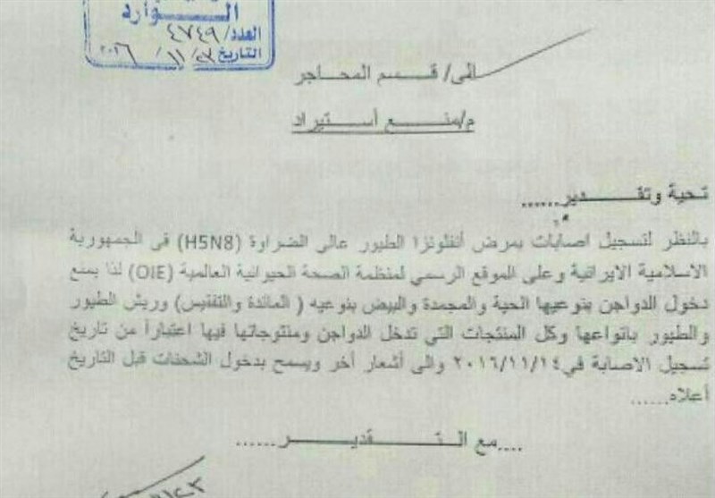 به گزارش خبرنگار اقتصادی خبرگزاری تسنیم، در پی شیوع ویروس آنفلوآنزای فوق حاد پرندگان در مرغداریهای استان تهران و تلف شدن حدود 5600 پرنده از کل حدود 283 هزار و 500 پرنده موجود در مرغداریهای این استان سازمان، دامپزشکی عراق بهصورت موقت واردات مرغ و تخممرغ از ایران را ممنوع کرد.