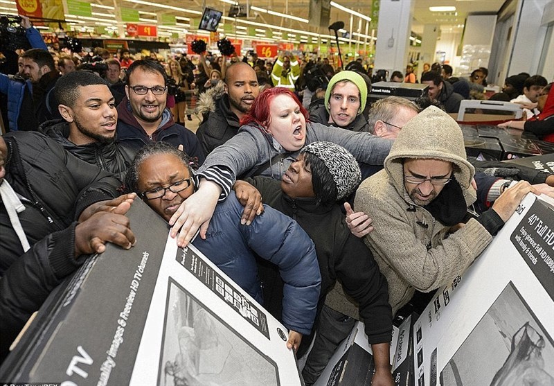 به گزارش خبرنگار اجتماعی خبرگزاری تسنیم، مردم آمریکا همزمان با روز جمعه سیاه به فروشگاههای زنجیرهای هجوم بردهاند و برای گرفتن تخفیف بیشتر و خرید برخی لوازم که با تخفیف بیشتری روبرو شدهاند با یکدیگر گلاویز میشوند.