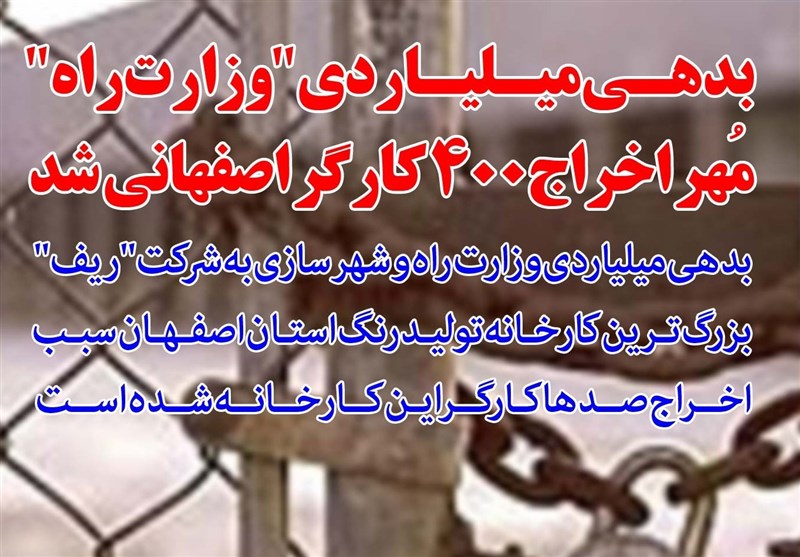 بدهی میلیاردی وزارت راه و شهرسازی به شرکت "ریف" بزرگ‌ترین کارخانه تولید رنگ استان اصفهان سبب اخراج صدها کارگر این کارخانه شده است.
