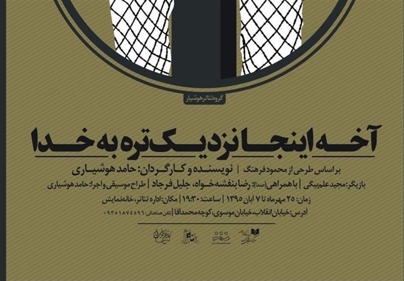به گزارش باشگاه خبرنگاران تسنیم «پویا»، حمید علی صمیمی نمایش «آخه اینجا نزدیک تره به خدا» به نویسندگی و کارگردانی حامد هوشیاری را به سی و پنجمین جشنواره بینالمللی تئاتر فجر معرفی کرد. این نمایش در قالب ویژه برنامه «عاشورا تا اربعین» از سوی کانون تئاتر دینی در خانه نمایش اداره تئاتر اجرا شده بود.