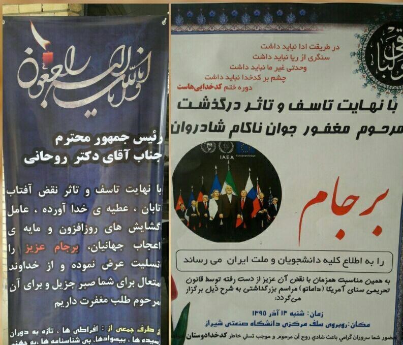 به گزارش خبرنگار دانشگاه باشگاه خبرنگاران تسنیم«پویا»، جمعی از دانشجویان دانشگاه شیراز در اقدامی نمادین و با انتشار اعلامیهای مجلس ختمی برای «برجام» برگزار کردند.