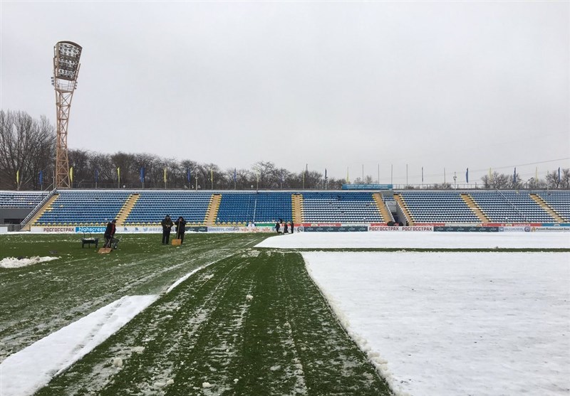 برف‌روبی ورزشگاه المپیک روستوف برای برگزاری دیدار تیم آزمون و عزت‌اللهی + عکس