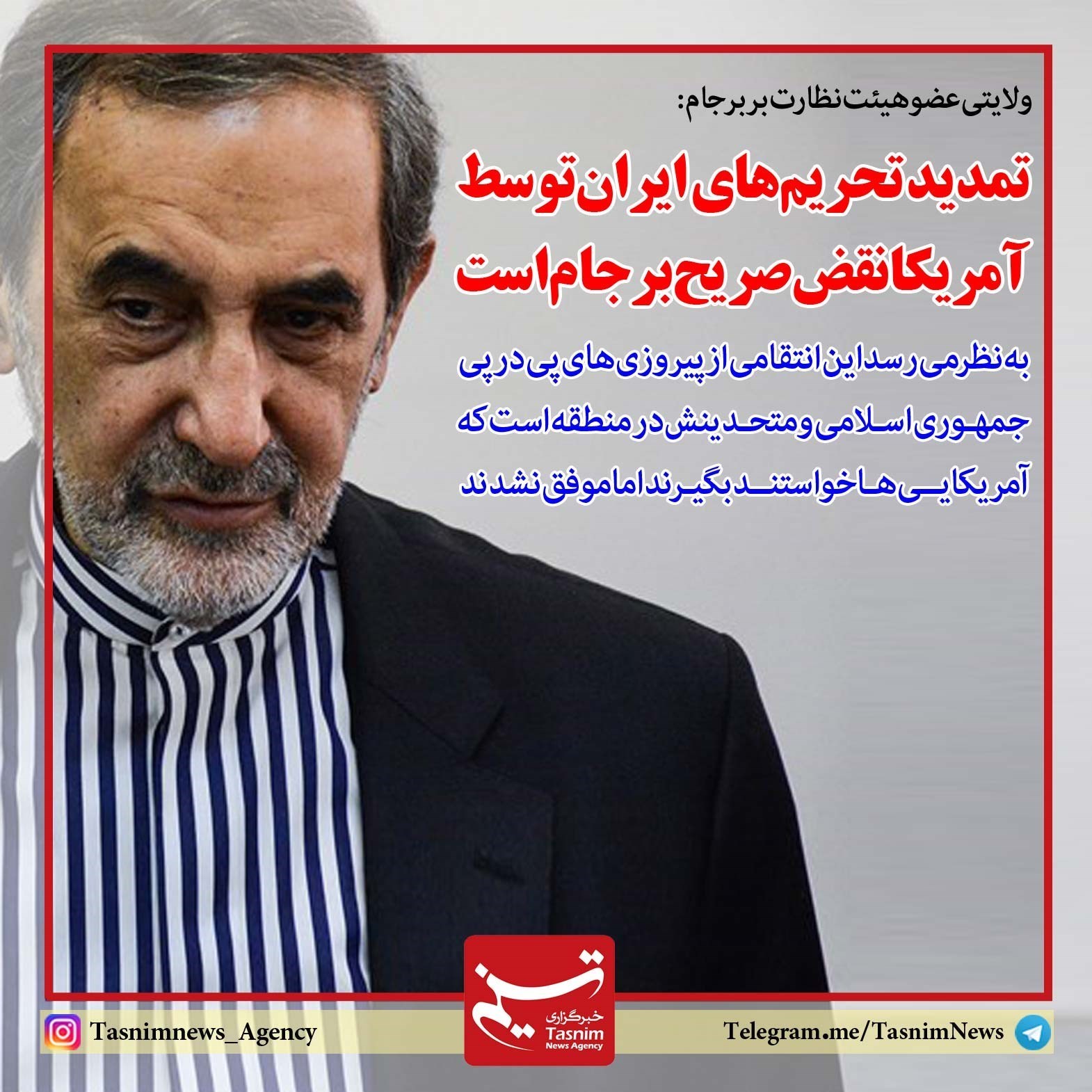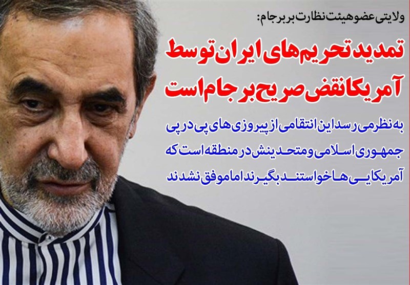 فوتوتیتر/ولایتی:تمدید تحریم‌های ایران توسط آمریکا نقض صریح برجام است