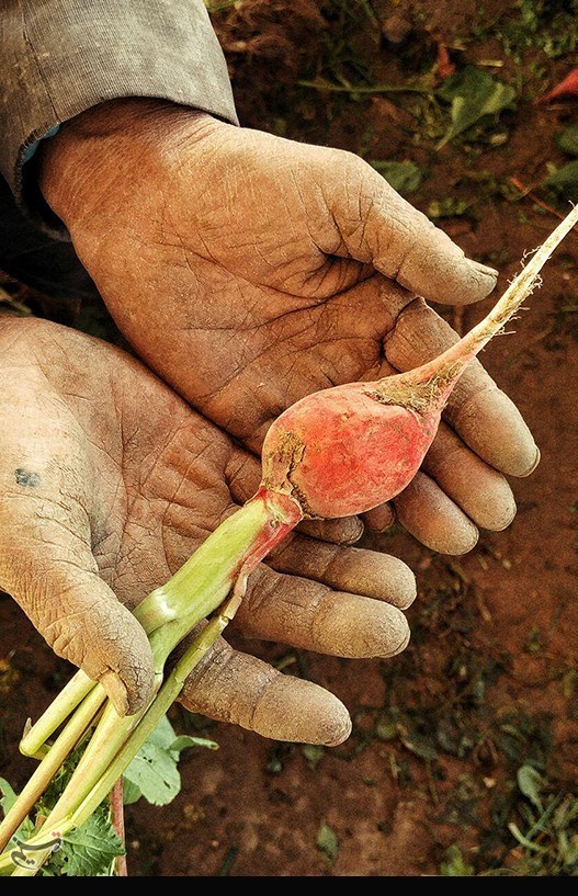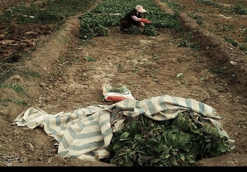 به خودم میآیم، زینب را میبینم که با جثه کوچکش خیلی فرز سبزیها را از زمین میچیند و دستهبندی میکند، هر چند دستکش به دست دارد اما هر ازگاهی دستانش را به هم میمالد و میگوید سبزیها خیس است با همین دستکش هم دستانم یخ میزند، مینشینم کنارش و سعی میکنم با کمی کمک همراهیاش کنم.