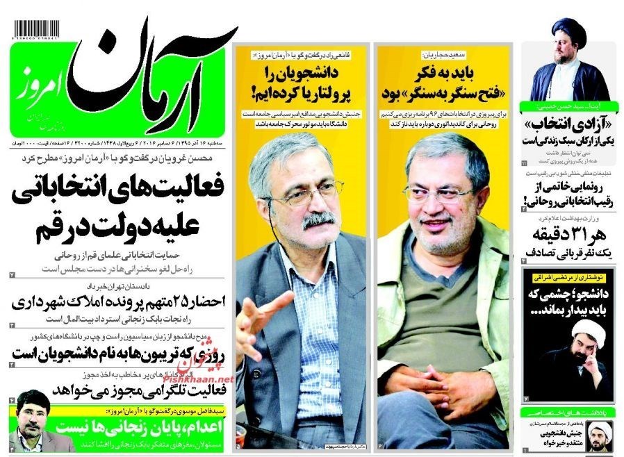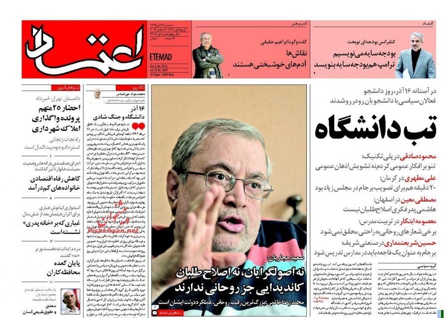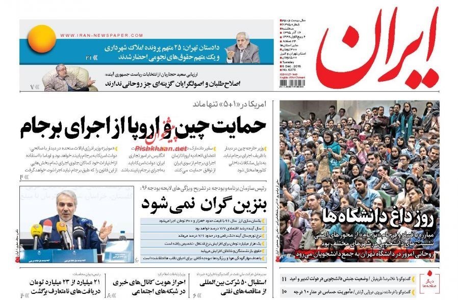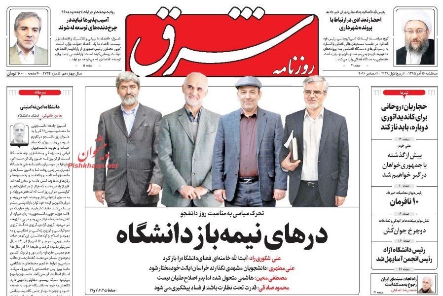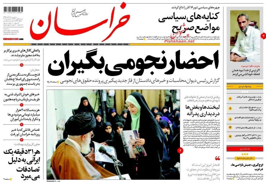 تصاویر صفحه اول روزنامه‌های سه‌شنبه 16 آذر