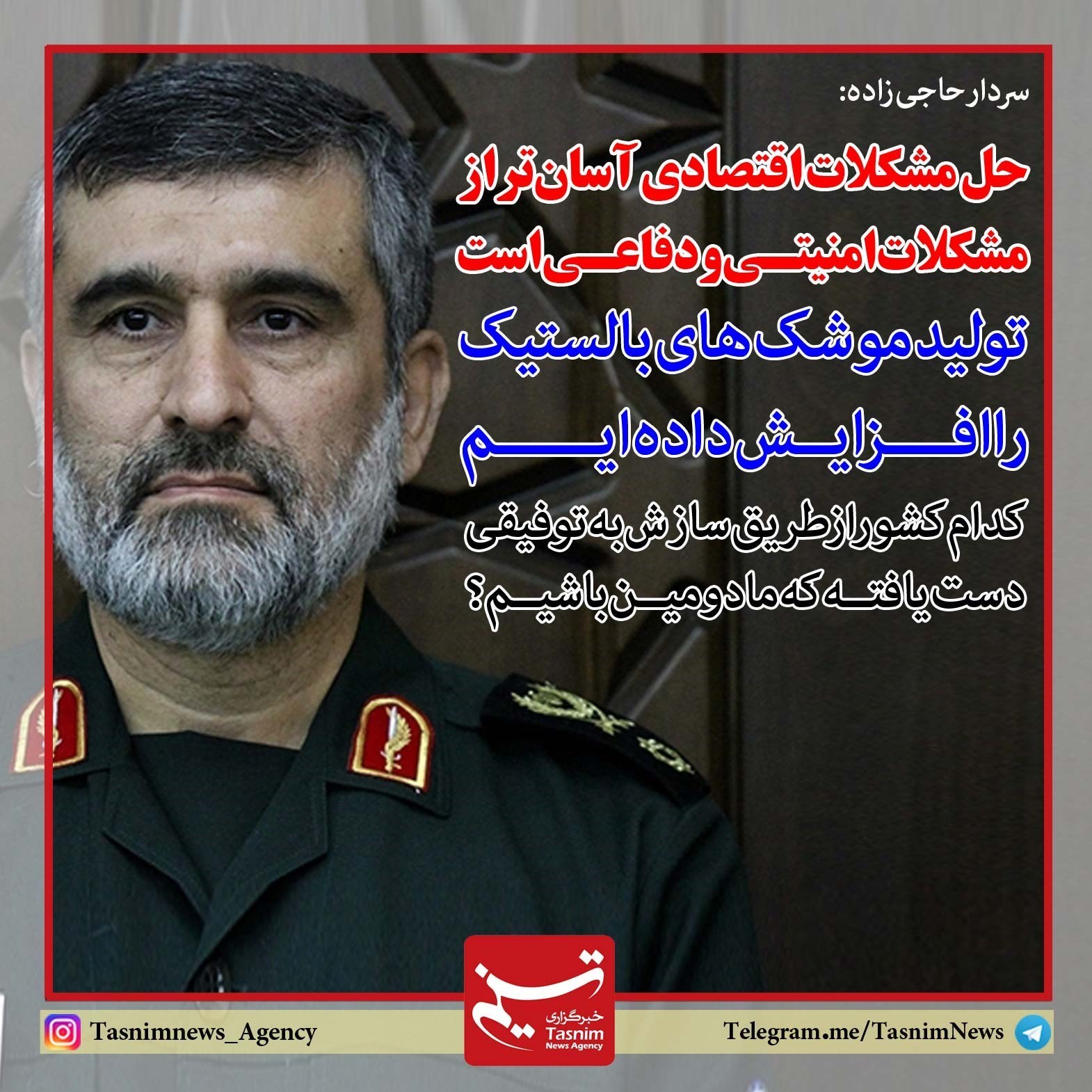 فوتوتیتر/سردارحاجی زاده :حل مشکلات اقتصادی آسان‌تر از مشکلات امنیتی و دفاعی است