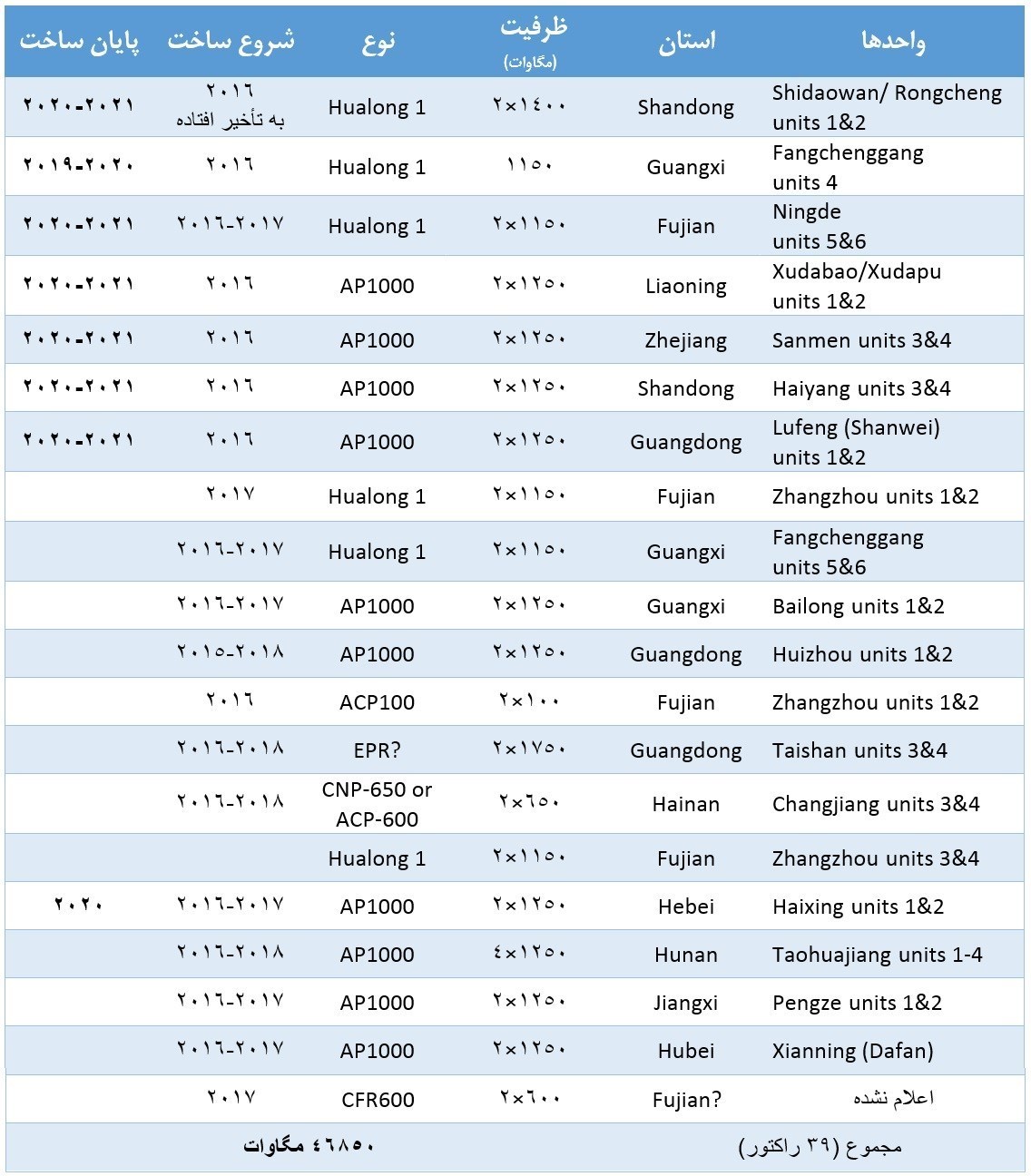 راکتورهای در حال ساخت چین