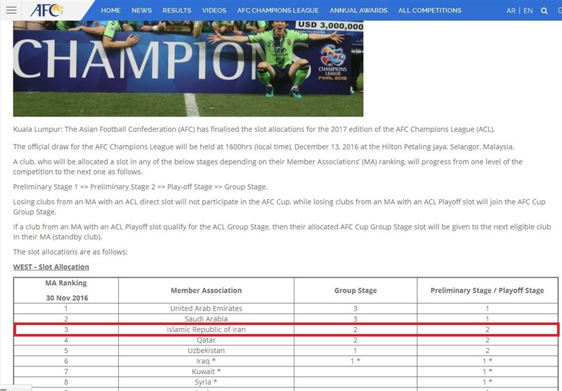 کنفدراسیون فوتبال آسیا سهمیه ایران در لیگ قهرمانان آسیا را 2+2 اعلام کرد.