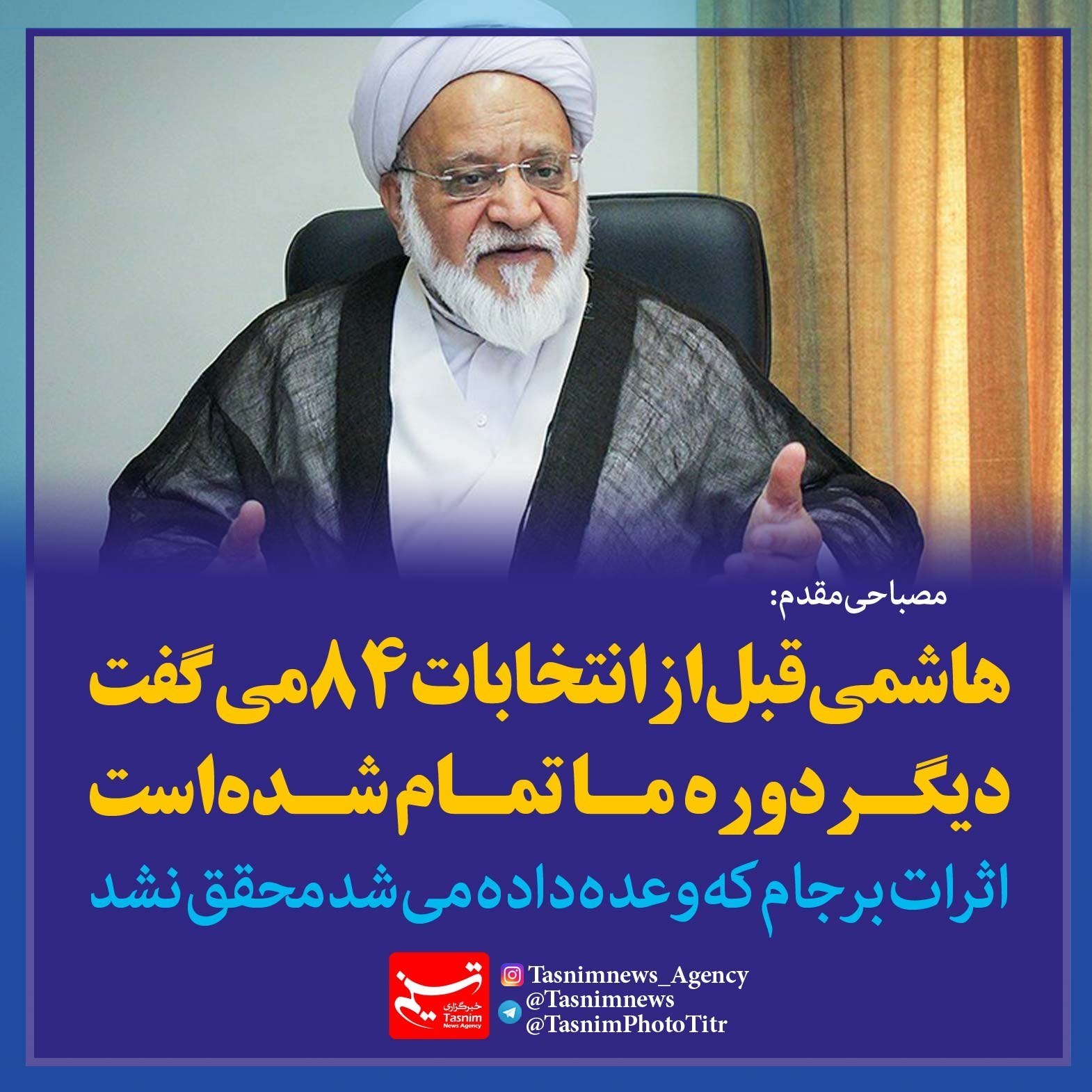 فوتوتیتر/مصباحی مقدم:رفسنجانی قبل از انتخابات 84 می‌گفت دیگر دوره ما تمام شده است