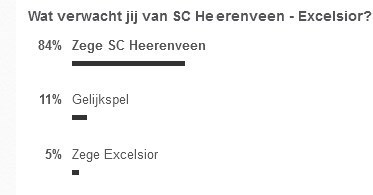 هواداران فوتبال هلند در نظرسنجی سایت مجله فوتبال اینترنشنال به عنوان معتبرترین رسانه ورزشی این کشور به گزینه پیروزی تیم هیرنوین برابر اکسلسیور رای 84 درصدی دادند. 11 درصد آرا به گزینه تساوی اختصاص یافت و فقط 5 درصد شرکت کنندگان در این نظرسنجی پیروزی تیم اکسلسیور را پیش بینی کردهاند.
