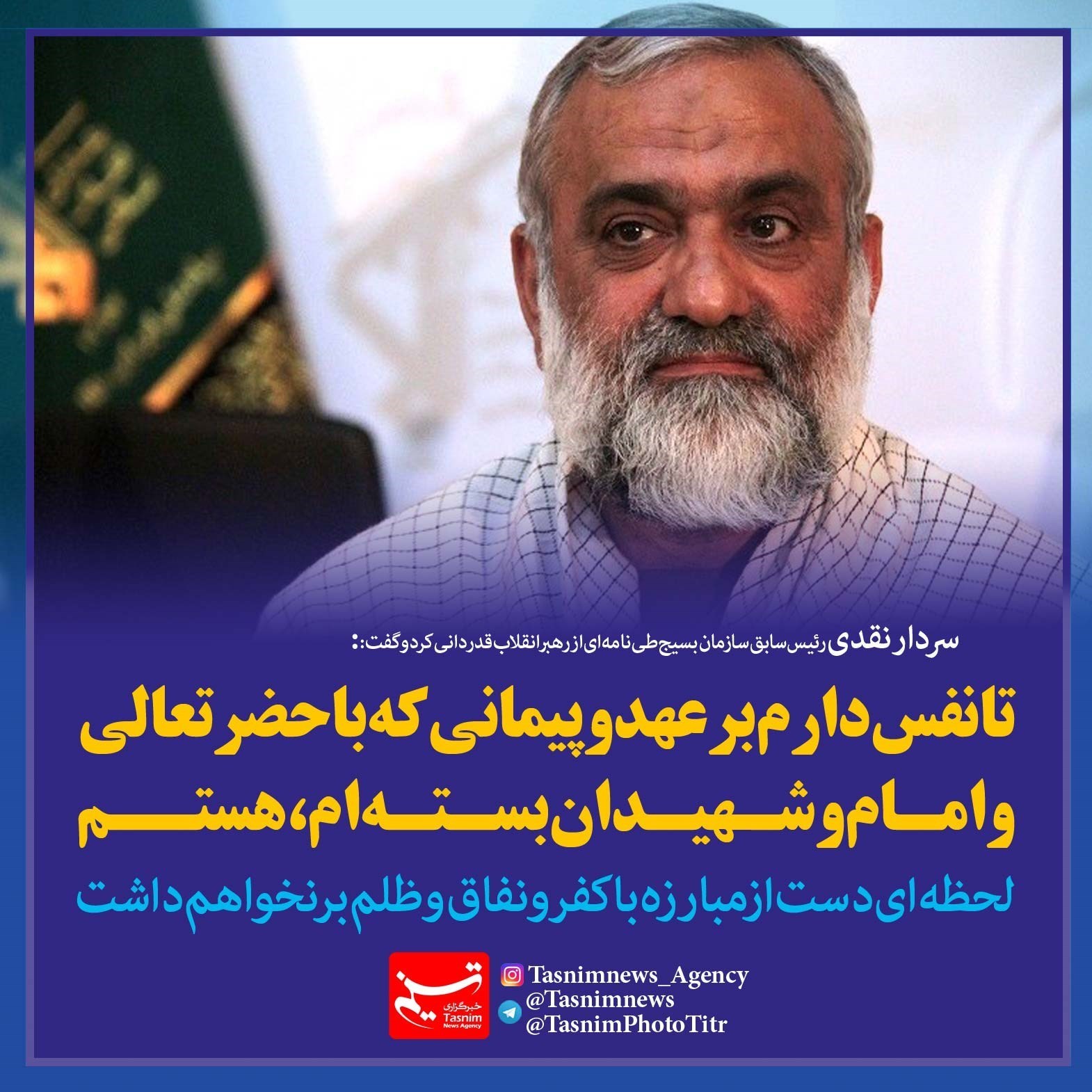 فوتوتیتر/سردارنقدی:لحظه‌ای دست از مبارزه با کفر و نفاق و ظلم بر نخواهم داشت
