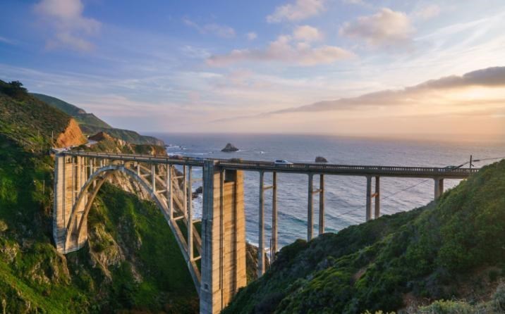 1- جاده «بیگ سور» (Big Sur) در ایالت کالیفرنیای آمریکا: این جاده از شهر «مونهتری» تا خلیج «مورو» امتداد مییابد و در نقاطی تا هزار فوت (حدود 304 متر) بالاتر از سطح دریا نیز میرسد.