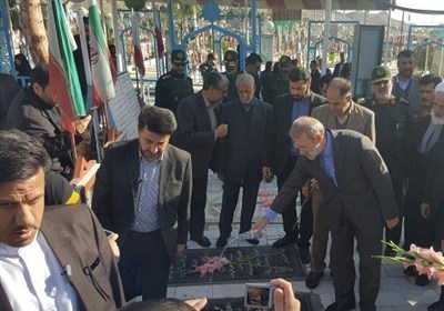 رئیس مجلس به همراه مسئولان استانی لحظاتی قبل با حضور بر مزار شهدای زاهدان به مقام شامخ شهداء ادای احترام کرند.
