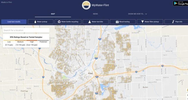 محققان در دانشگاه میشیگان با حمایت شرکت گوگل موفق به توسعه اپلیکیشنی شدند که به مردم میشیگان کمک می‌کند تا روند بازسازی زیرساخت‌های شهر خود برای مقابله با آلودگی آب را پیگیری کنند.
