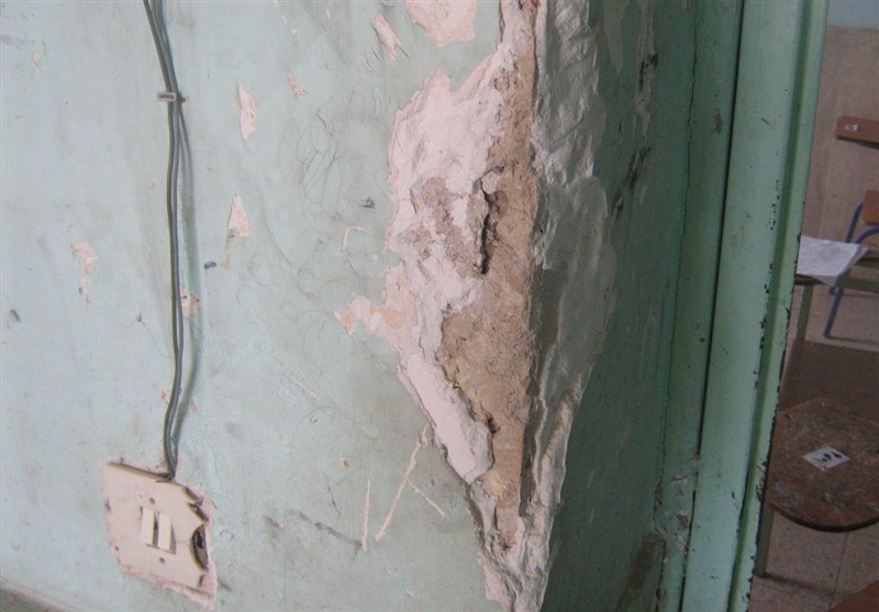 ریزش دیوار مدرسه روستای مختارآباد در دلفان