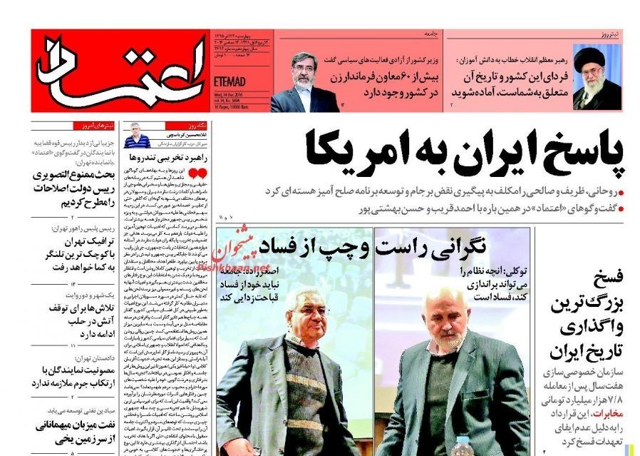 تصاویر صفحه اول روزنامه‌های چهارشنبه 24 آذر