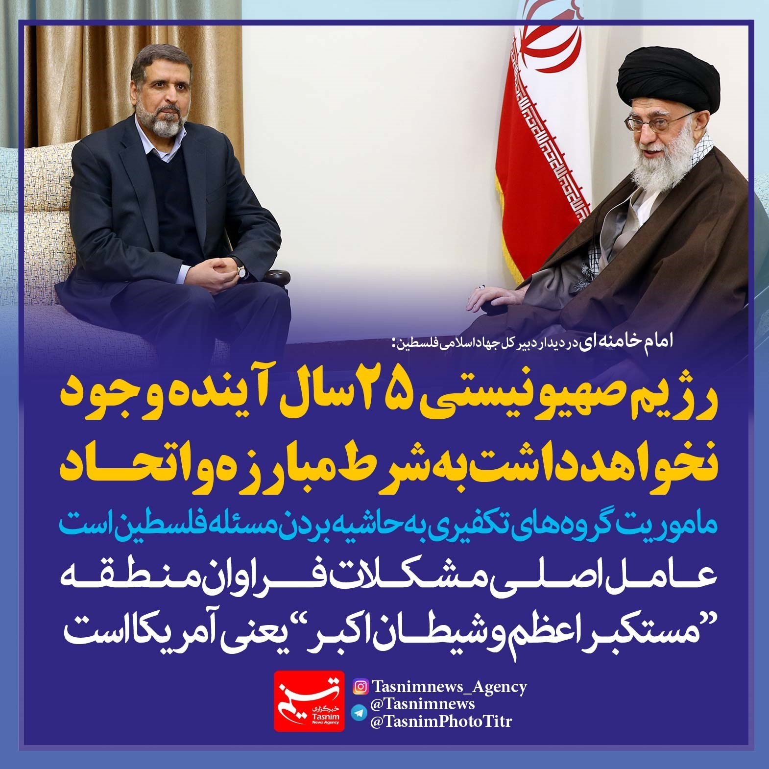 فوتوتیتر/امام خامنه ای:رژیم صهیونیستی 25سال آینده وجود نخواهد داشت به‌شرط مبارزه و اتحاد