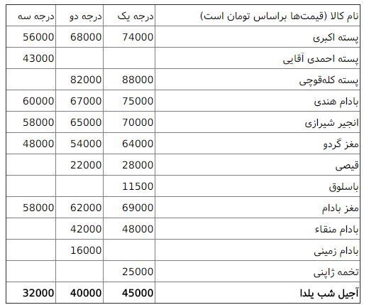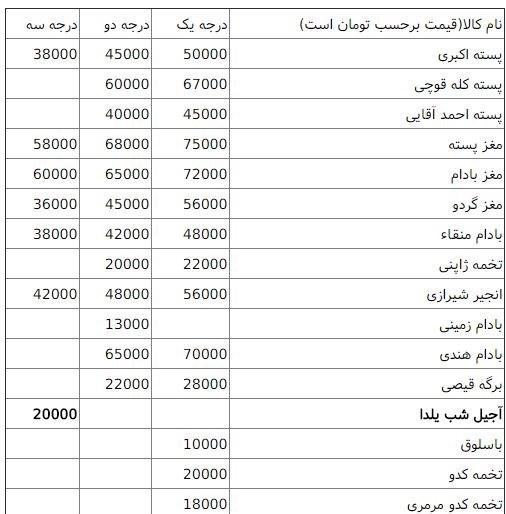 * قیمت هرکیلوگرم آجیل و خشکبار در خیابان نجاتالهی (ویلا)