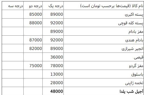 * قیمت هر کیلوگرم آجیل شب یلدا در خیابان ولیعصر (پارک ساعی)