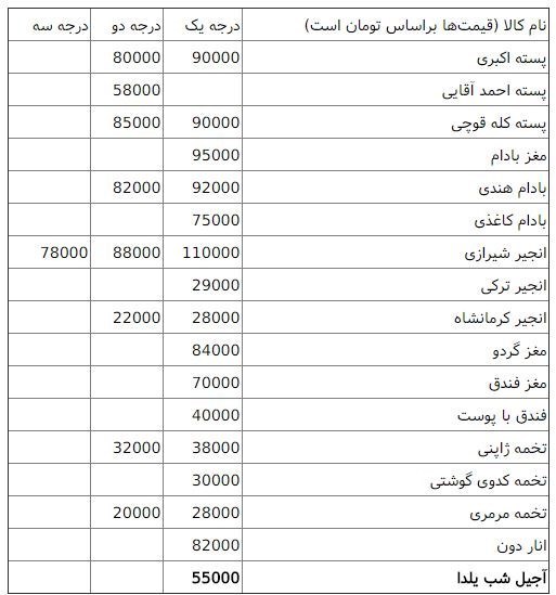 براساس این گزارش: یکی از رسوم کهن مردم ایران صرف تنقلات مختلف از جمله آجیل شب یلدا و صرف انار و هندوانه است و همین موضوع هم بازار این محصولات را در روزهای منتهی به این شب گرم و شلوغ میکند.