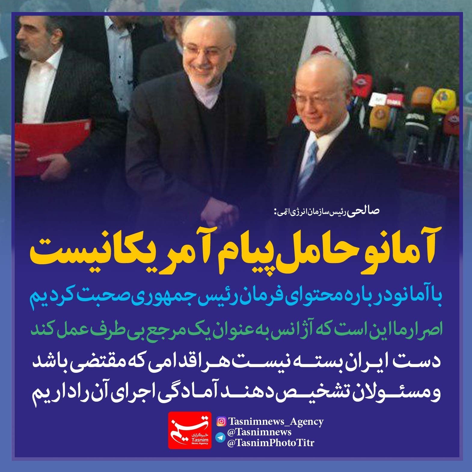 فوتوتیتر/صالحی:آمانو حامل پیام آمریکا نیست