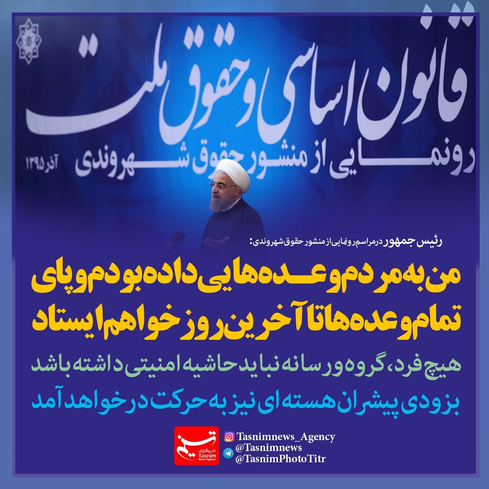 رئیس‌جمهور گفت: امروز بسیار خوشحالم که با رونمایی از حقوق شهروندی یکی از وعده‌هایم تحقق پیدا کرد.