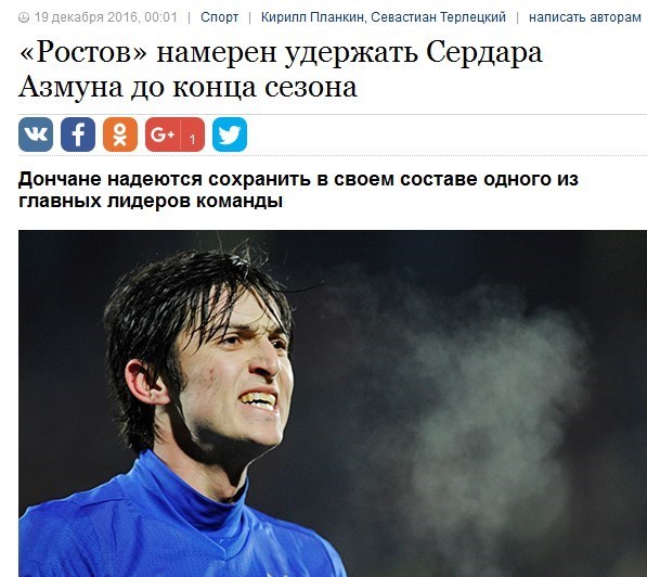روزنامه دولتی روسیه در پایان این خبر مصاحبهای نیز از الکساندر شیکونوف، نایب رئیس پیشین باشگاه روستوف منتشر کرد که گفته است: سردار آزمون بازیکن کلیدی روستوف است و تمایل بسیاری از باشگاه های اروپایی برای جذب این بازیکن حقیقت دارد. این اتفاق هم تعجب برانگیز نیست و پیش بینی آینده سردار آزمون در این شرایط سخت است. همه چیز بستگی به شرایط روستوف در لیگ برتر روسیه و لیگ اروپا دارد.