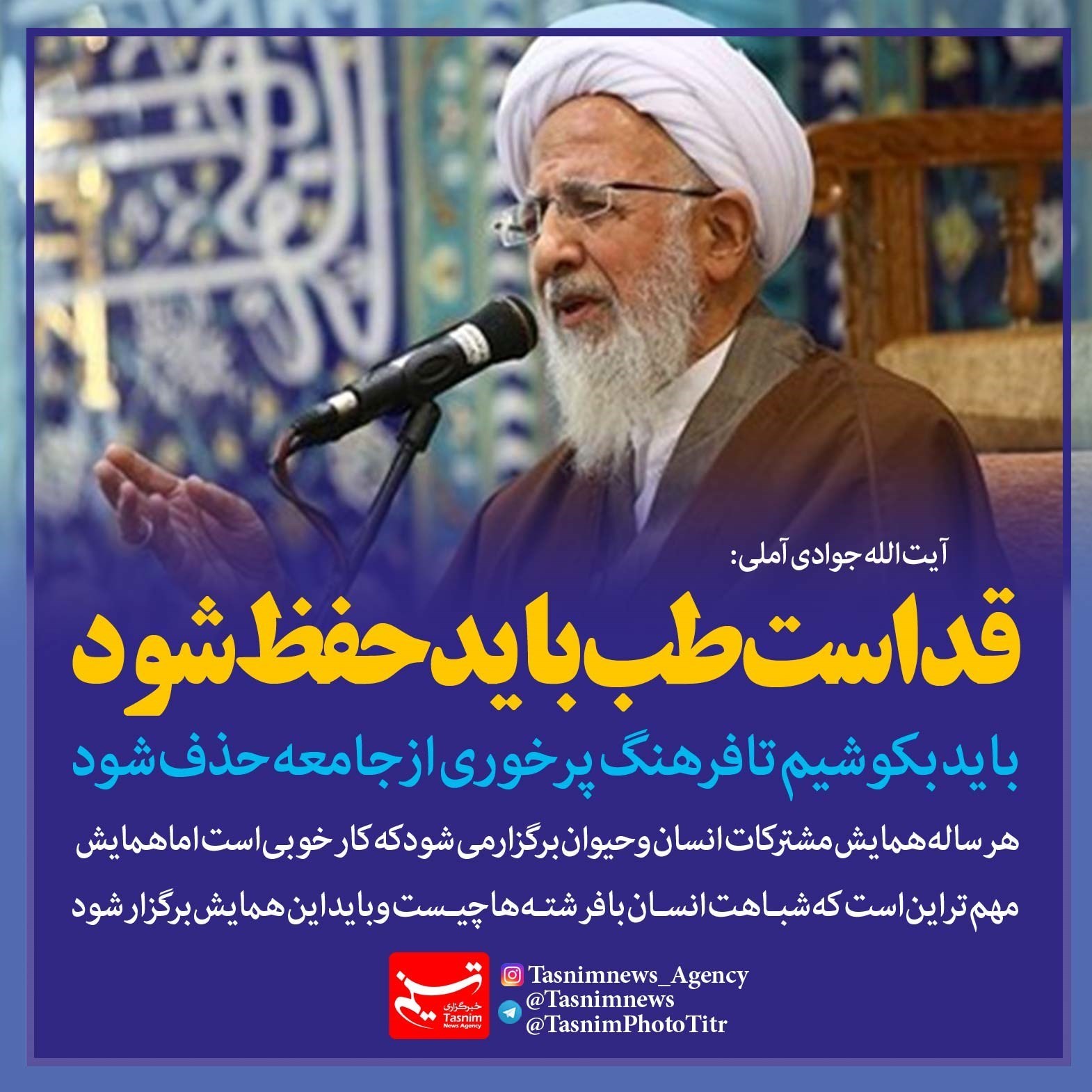 فوتوتیتر/آیت الله جوادی آملی:باید بکوشیم تا فرهنگ پرخوری از جامعه حذف شود