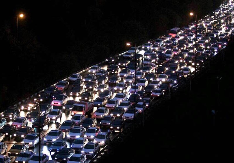 همچنین خیابانهای اصلی تهران نیز بار سنگین ترافیک را در طولانی ترین شب سال سپری میکنند.