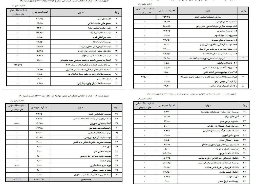 به گزارش تسنیم، اسامی 50موسسه فرهنگی که قرار است بودجه انها در سال آینده حذف گردد در جدول زیر آمده است.