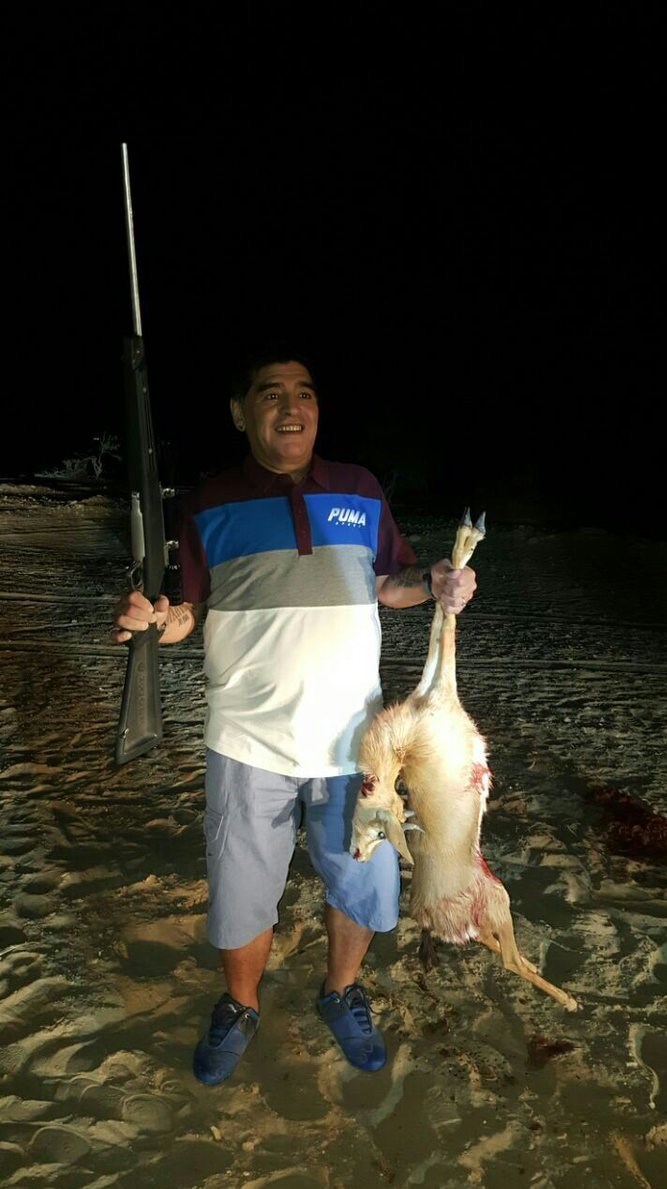 ناچو مونتوس دِ اوکا، خبرنگاری که عکس مارادونای در حال شکار را در صفحه توئیترش گذاشته، در پیامی نوشته است: مارادونا یک گونه غزال عربی را در دست دارد. او یک غزال جوان و نه بالغ را هم شکار کرده است که اگر مورد حمله قرار گرفته شود، میتواند بسیار خطرناک باشد.