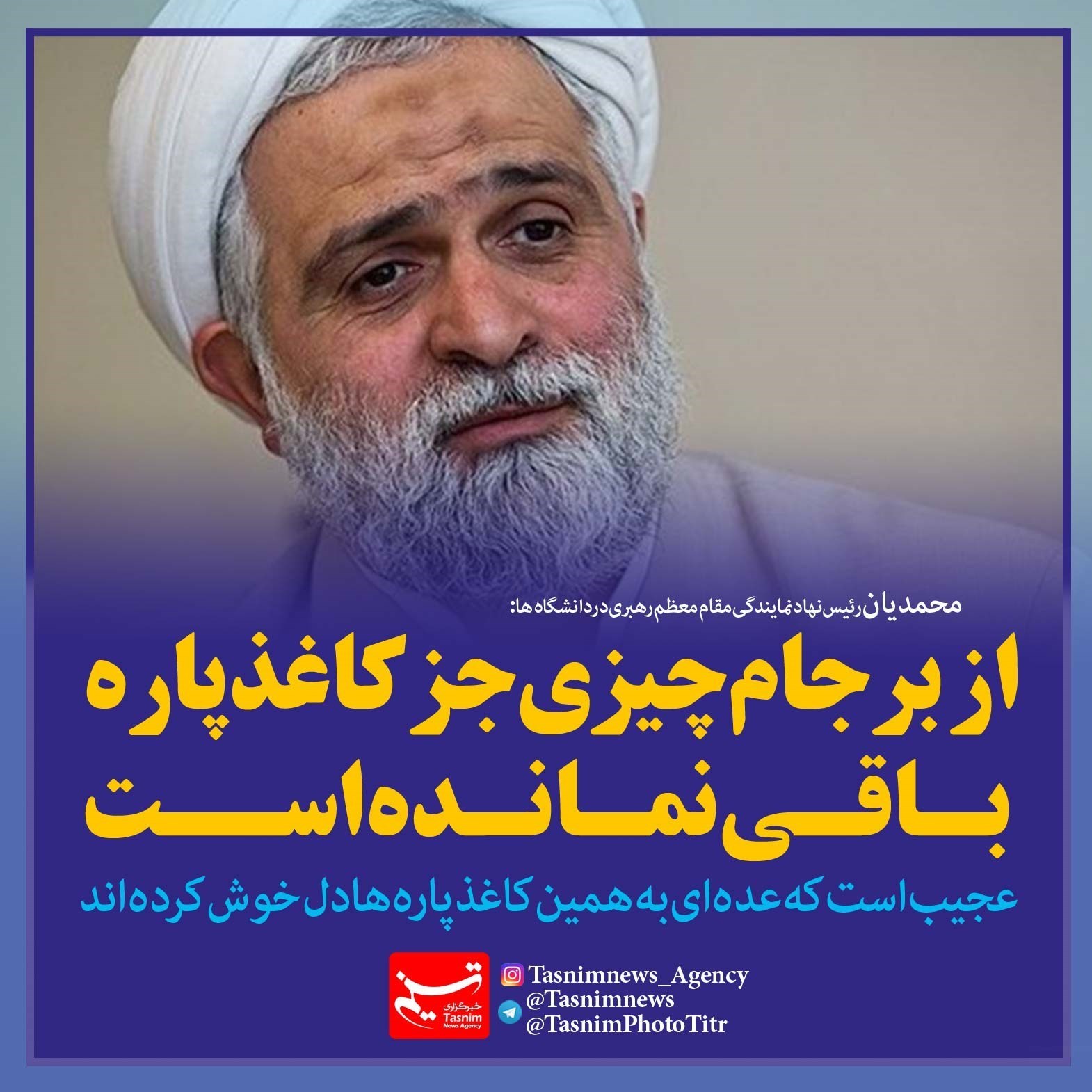 رئیس نهاد نمایندگی مقام معظم رهبری در دانشگاه‌ها با بیان اینکه امروز از برجام چیزی جز کاغذپاره باقی نمانده است، گفت: عجیب است که عده‌ای به همین کاغذپاره‌ها دل‌خوش کرده‌اند.