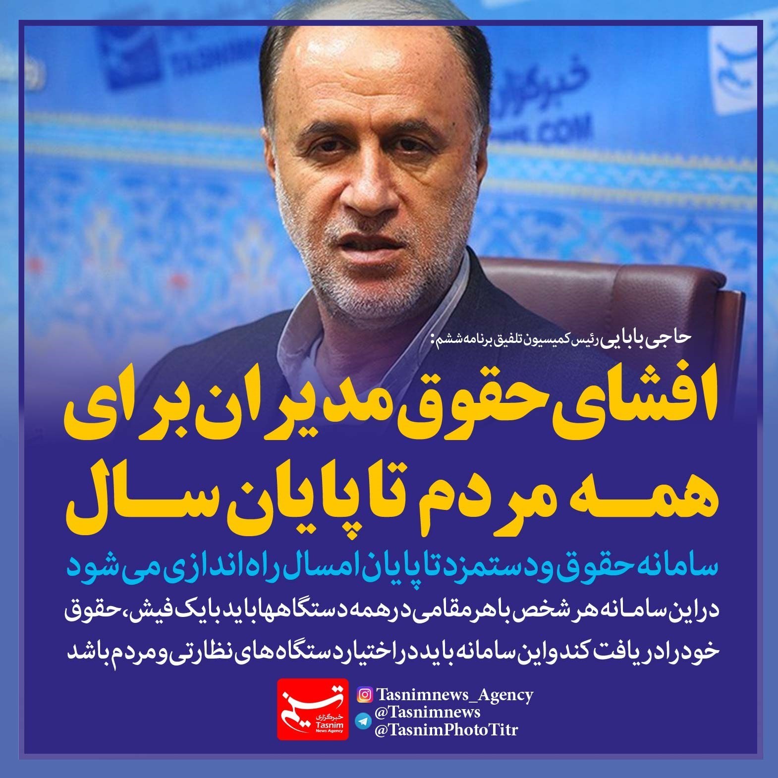 فوتوتیتر/حاجی بابایی: افشای حقوق مدیران برای همه مردم تا پایان سال