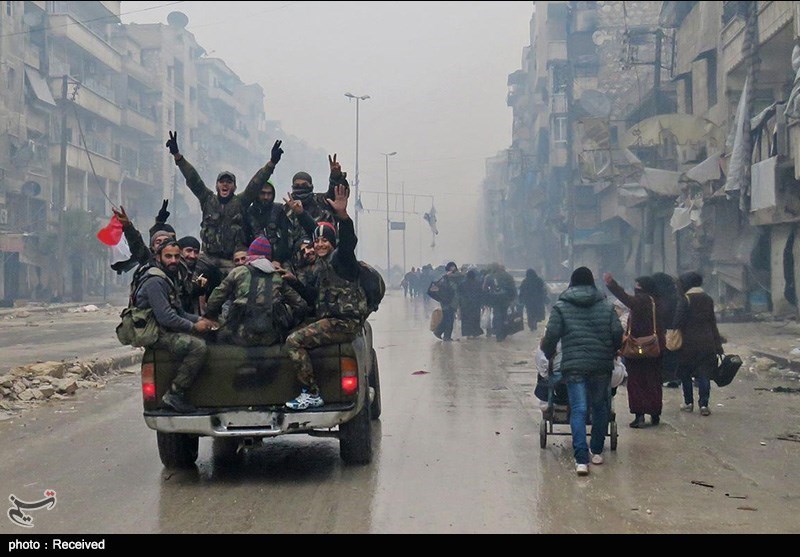 از سوی دیگر با خروج آخرین گروه تروریست ها و خانواده های آن ها و اعلام پاکسازی کامل حلب، شهروندان حلبی با حضور در خیابان ها به شادی و پایکوبی پرداختند.