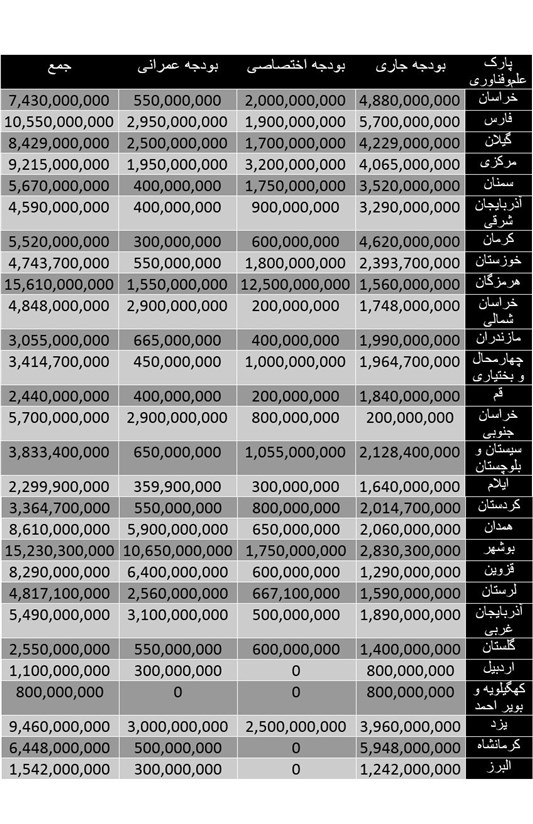 *کلیه ارقام مندرج در جدول به تومان است.