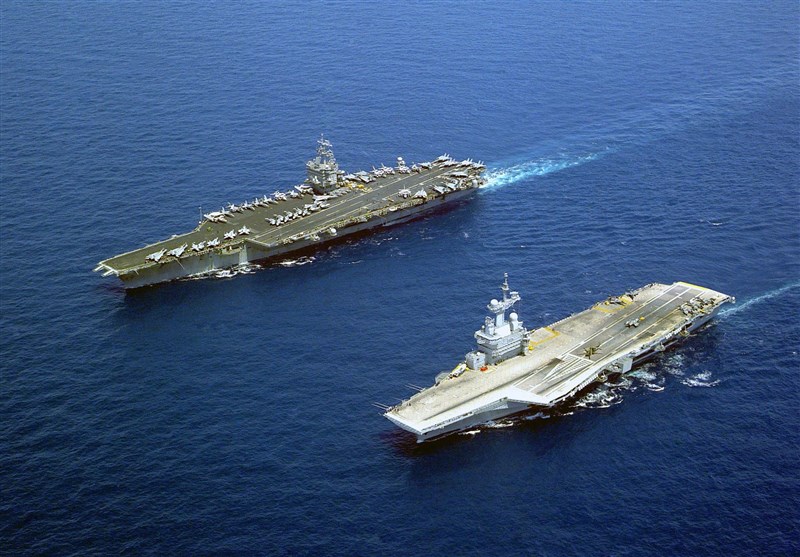ناو یو.اس.اس اینترپرایز(سمت چپ) اولین ناو با پیشران هستهای و ناو شارل دوگل(سمت راست) جدیدترین ناو با پیشران هستهای در یک قاب