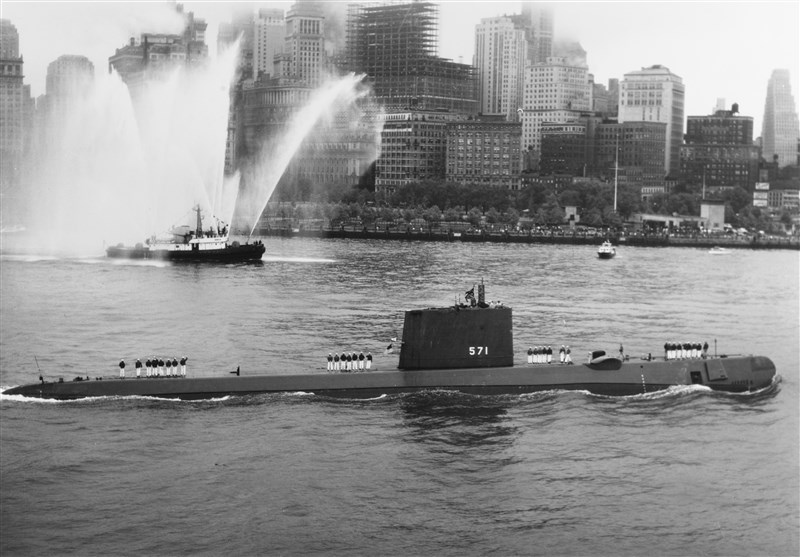 زیردریایی USS Nautilus (SSN-571) نمونهای از یک زیردریایی هستهای(عکس مربوط به سال 1958 میلادی است)